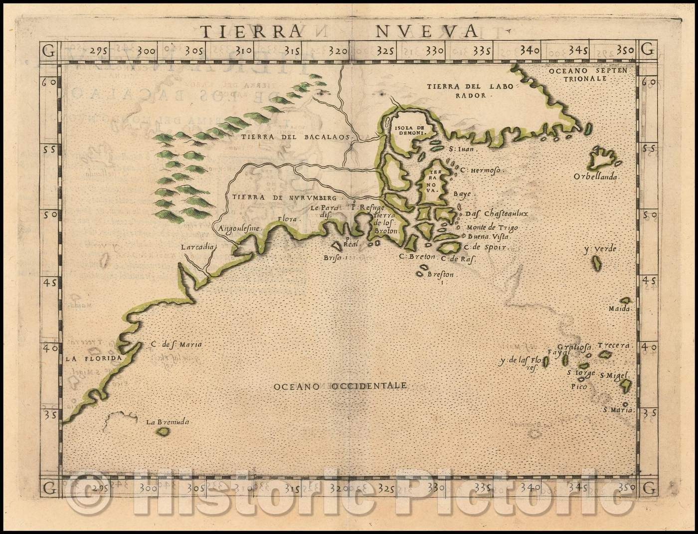 Historic Map - [New England] Tierra Nueva, 1561, Girolamo Ruscelli - Vintage Wall Art
