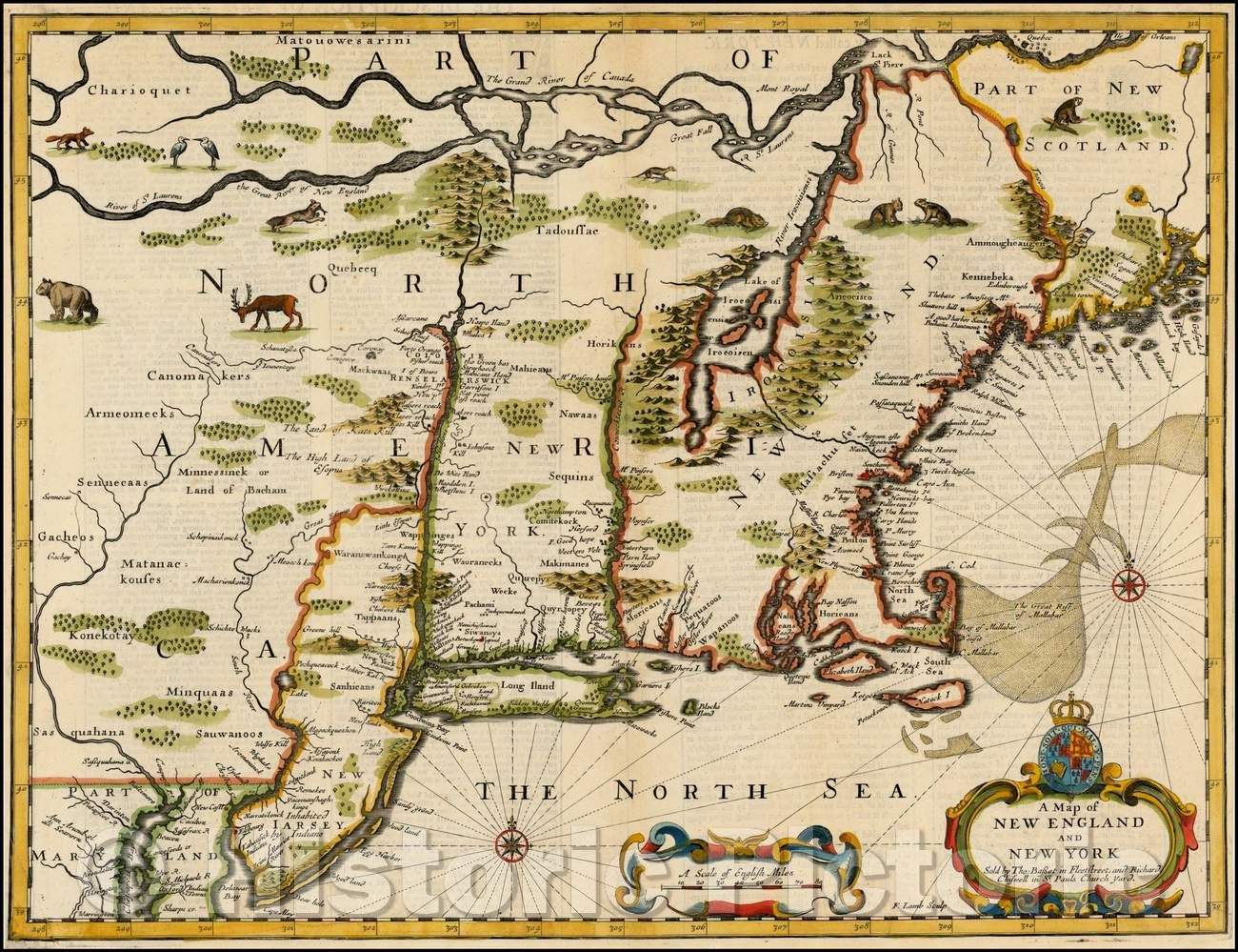 Historic Map - A Map of New England and New York, 1676, John Speed v2