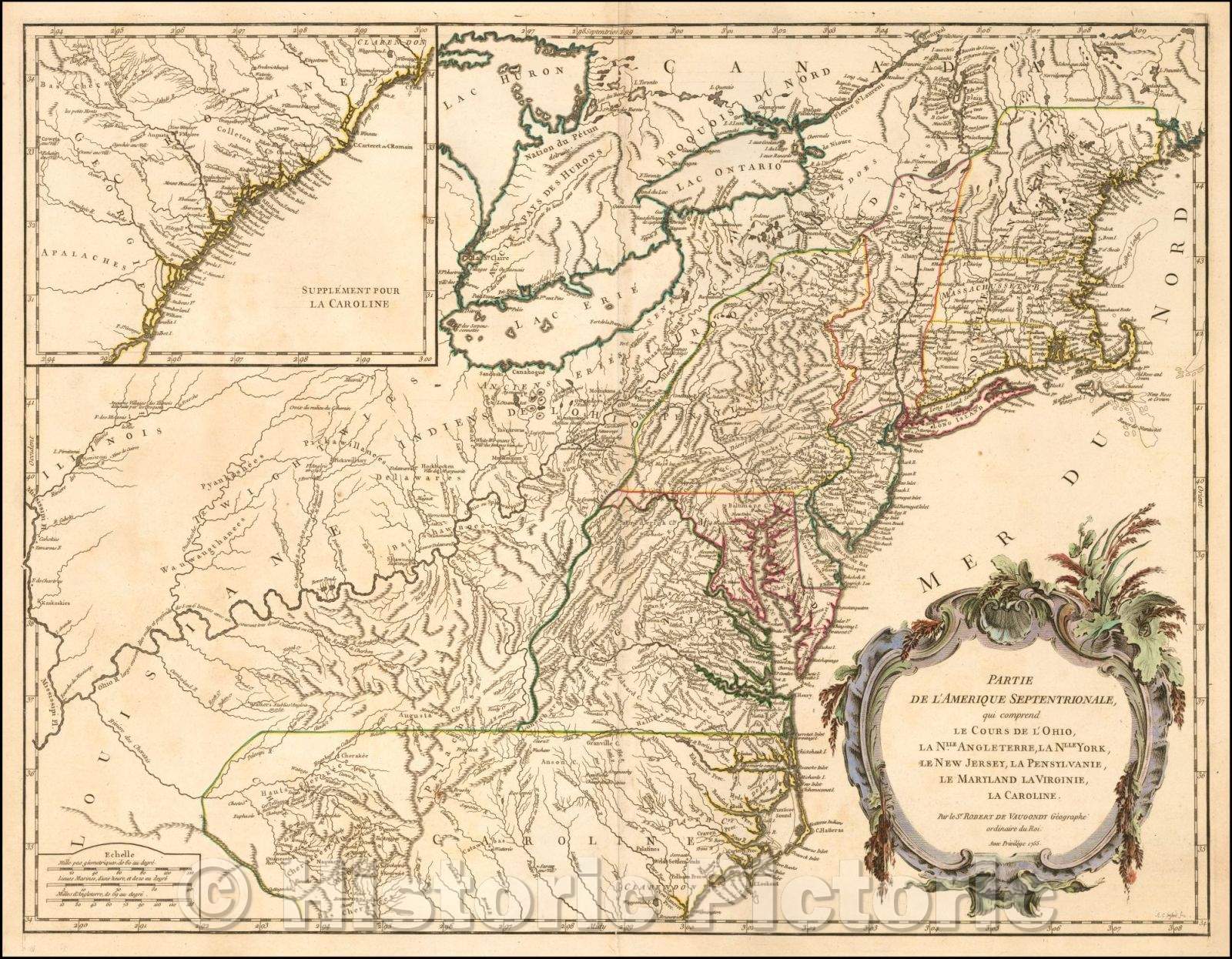 Historic Map - New England, New York, New Jersey and Pensilvania (First map to show American post roads), 1729, - Vintage Wall Art