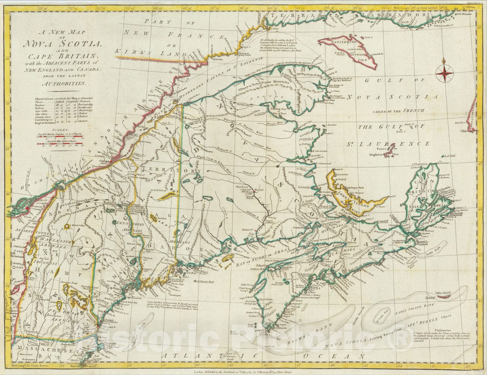 Historic Map : A New Map of Nova Scotia and Cape Britain, with the Adjacent Parts of New England and Canada, From The Latest Authorities, 1785, John Murray, Vintage Wall Art