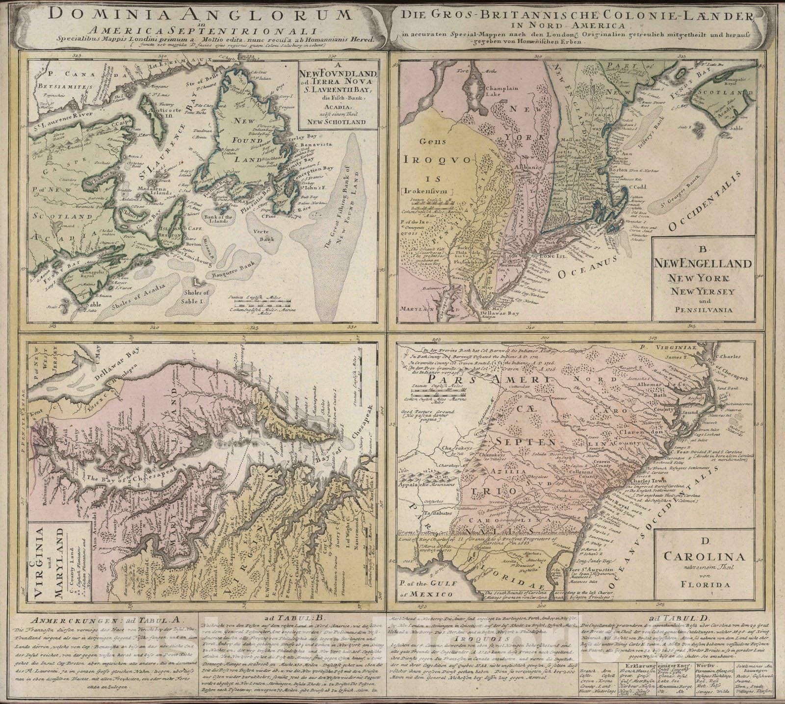 • .Historic Map : Newfoundland, New England 1745 Dominia Anglorum in America Septentrionali. , Vintage Wall Art