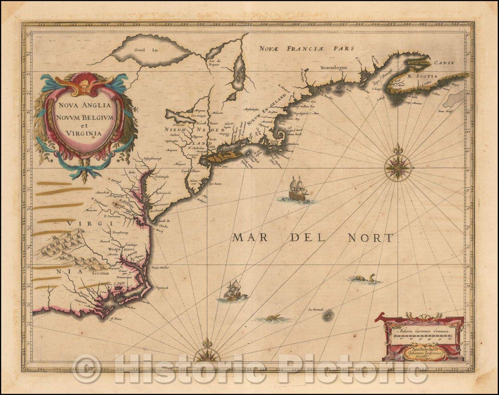 Nova Anglia Novum Belgium et Virginia /New England and New Belgium Virginia, 1637, Jan Jansson