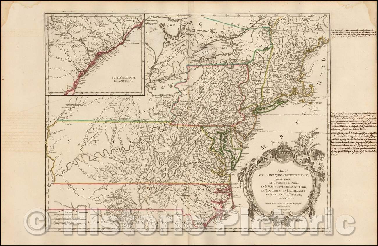 Historic Map - Partie De L'Amerique Septentrionale/Ohio, New England, New York, New Jersey, Pennsylvania, Maryland, Virginia, 1755 v1