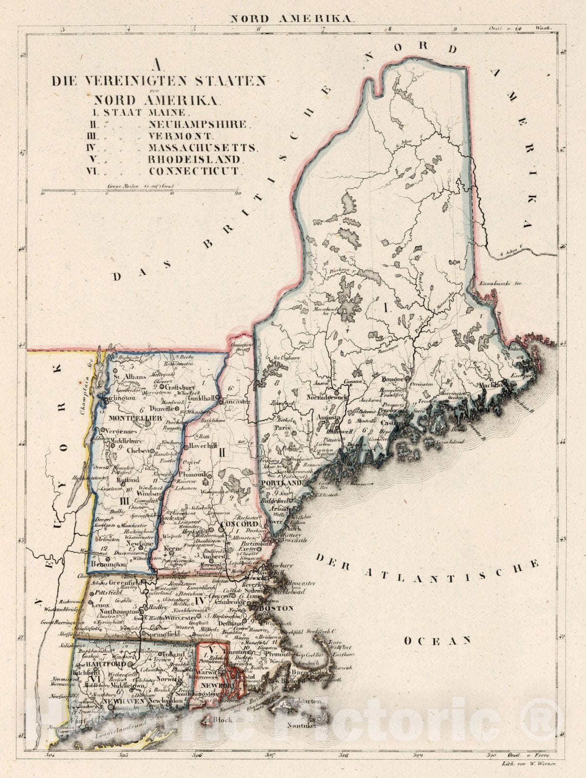 Historic Map : United States, New England A. Die Vereinigten Staaten von Nord Amerika 1830 v1 , Vintage Wall Art