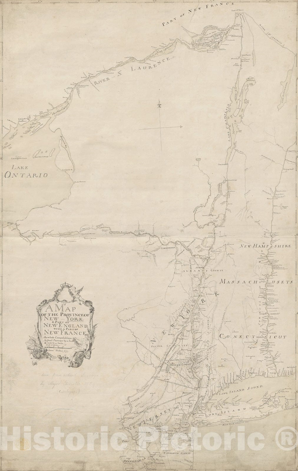 A MAP OF THE PROVINCE OF NEW-YORK, & PART OF NEW ENGLAND WITH A PART OF NEW FRANCE the whole Composed from Actual Surveys