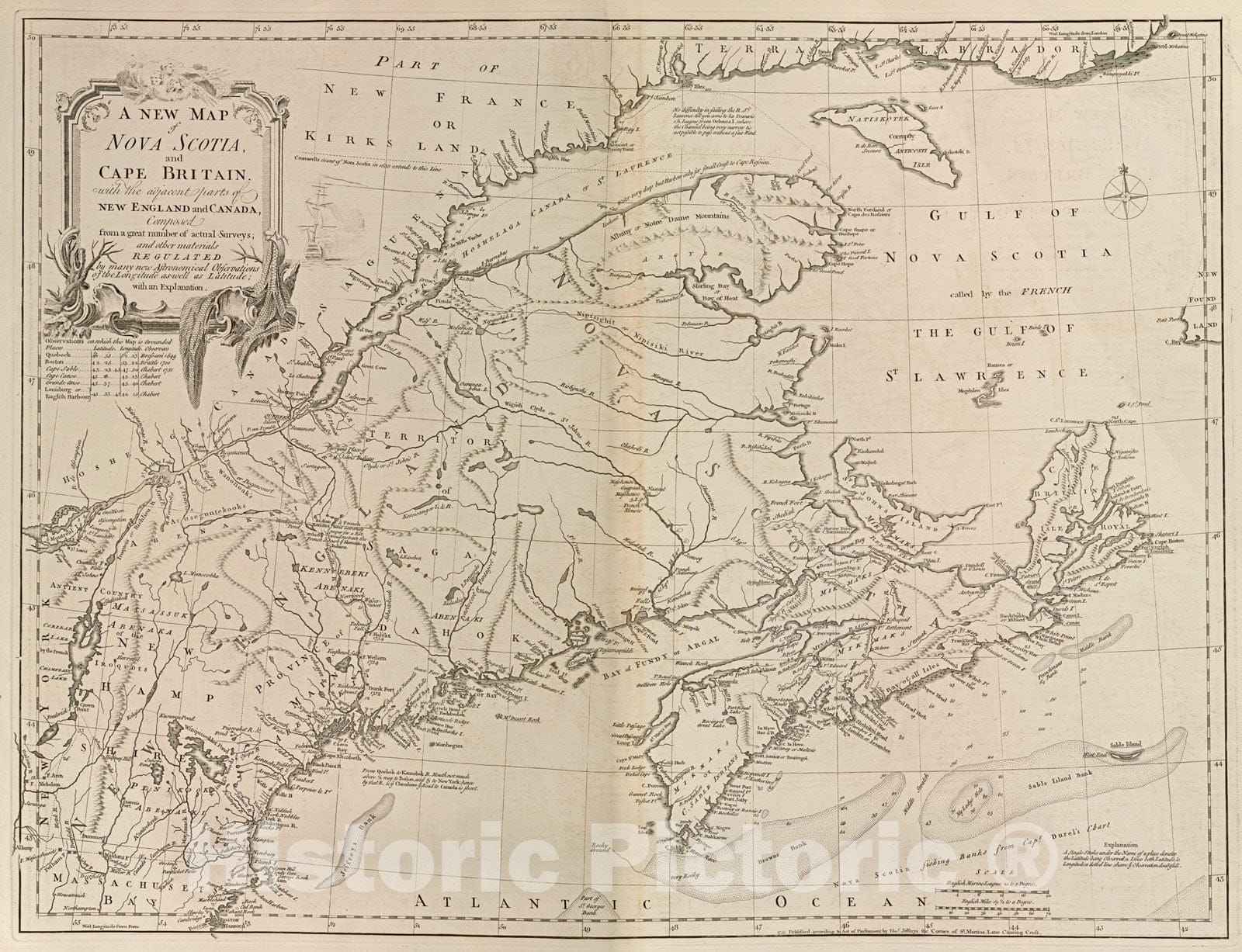 Historical Map, 1768 A New map of Nova Scotia, and Cape Britain : with The Adjacent Parts of New England and Canada, Composed from a Great Number of Actual surveys, Vintage Wall Art
