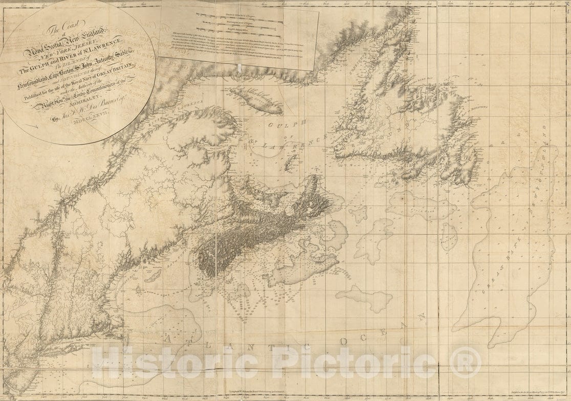 Historical Map, 1777 The Coast of Nova Scotia, New England, New-York, Jersey, The Gulph and River of St. Lawrence : The Islands of Newfoundland, Cape Breton, St, Vintage Wall Art