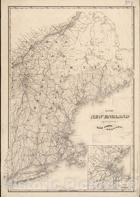 Historical Map, 1870-1879 Map of New England with Adjacent portions of New York & Canada, Vintage Wall Art