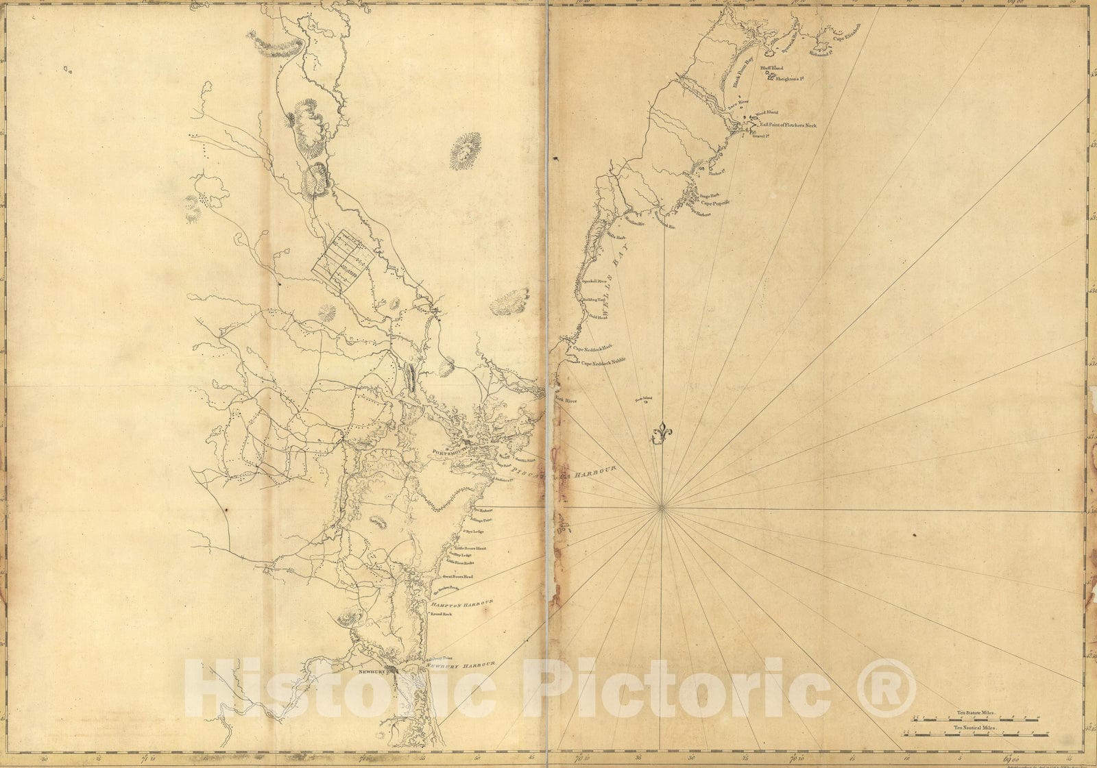 Historic Map : 18th Century Coastal Charts, New England 1776 Topographic Map , Vintage Wall Art