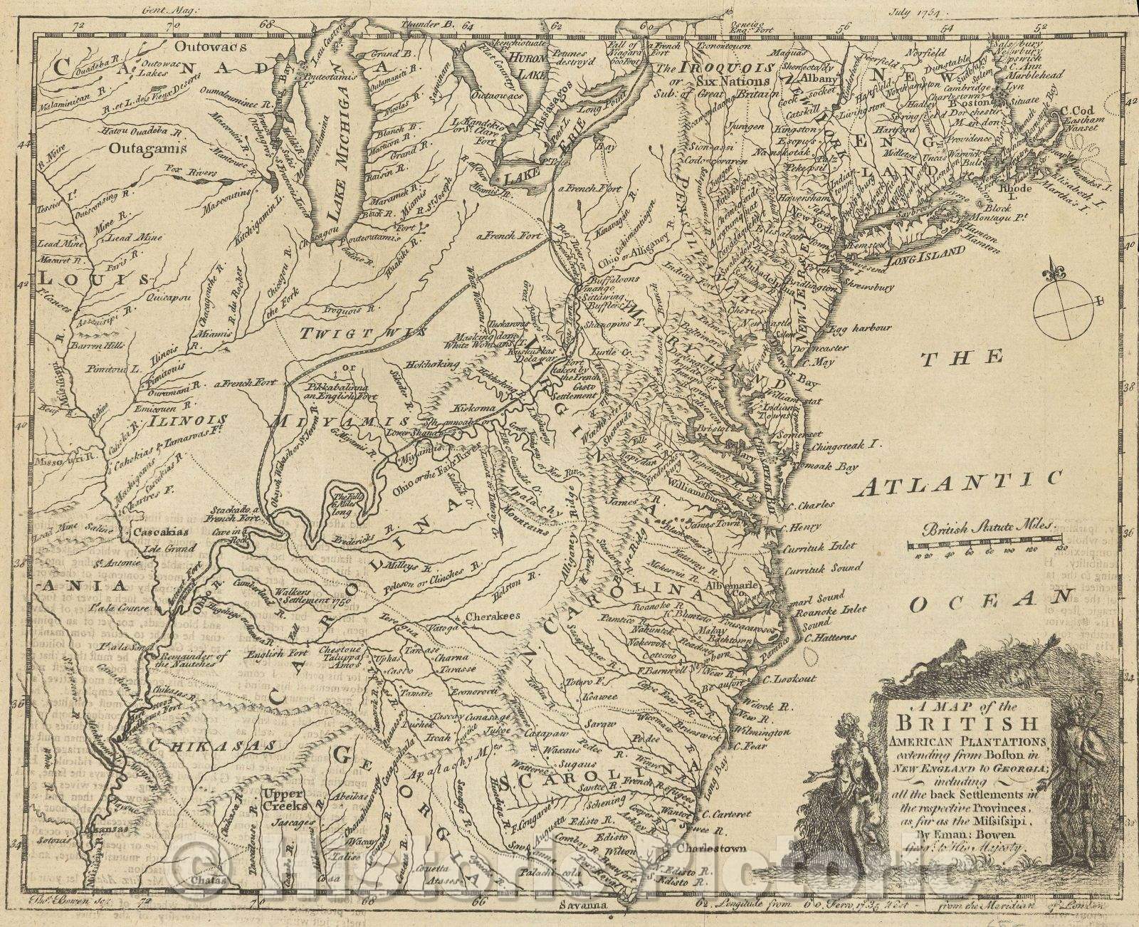 Historic Map : A map of the British American plantations, extending from Boston in New England to Georgia, 1754 , Vintage Wall Art