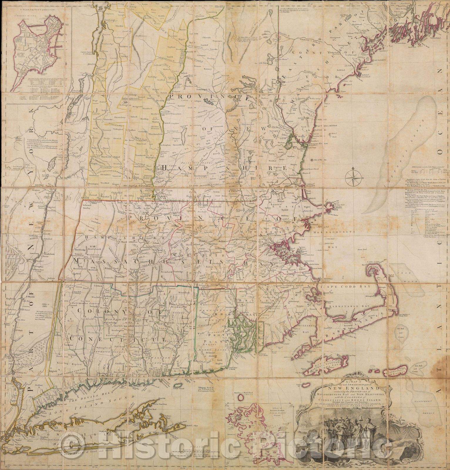 Historic Map : A Map of the most Inhabited part of New England, containing the Provinces of Massachusetts Bay and New Hampshire, with the Colonies of Conecticut, c. 1762 , Vintage Wall Art