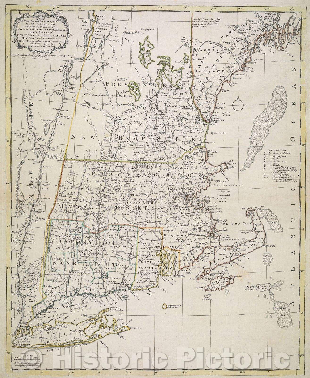 Historic Map : A Map of the most inhabited part of New England, containing the provinces of Massachusetts Bay and New Hampshire with the colonies of Conecticut, 1765 , Vintage Wall Art