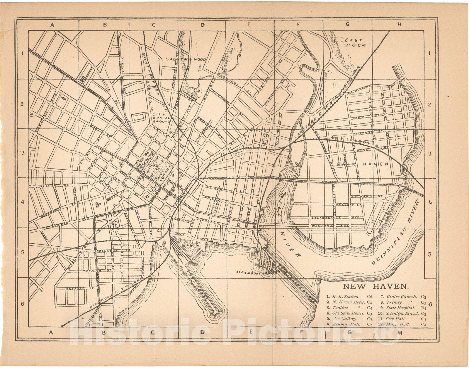 Historic Map : New England, New Haven 1890 , Vintage Wall Art
