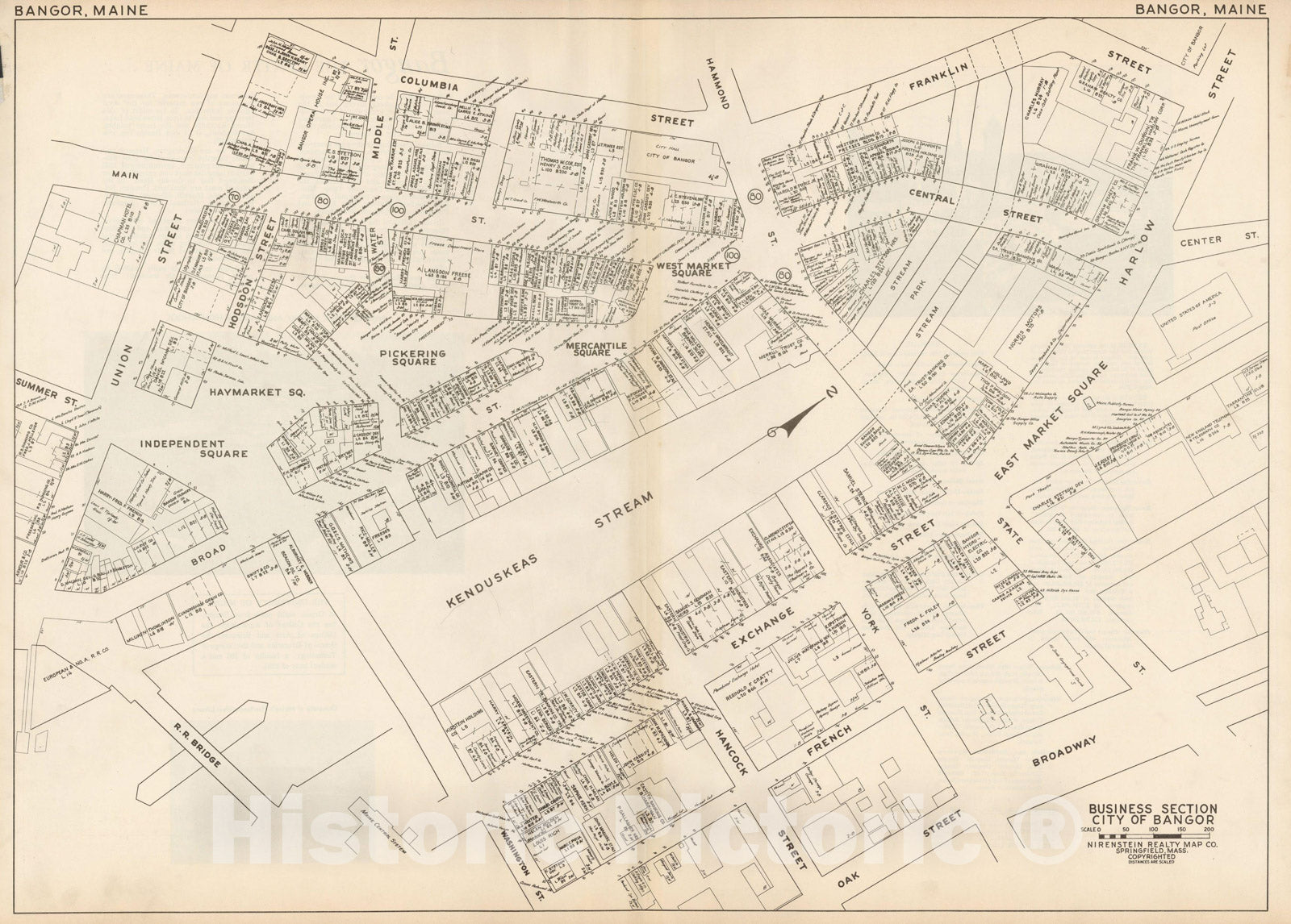 Historic Map : New England States Ed., Bangor 1946 , Nirenstein's National Preferred Real Estate Locations of Business Properties , Vintage Wall Art