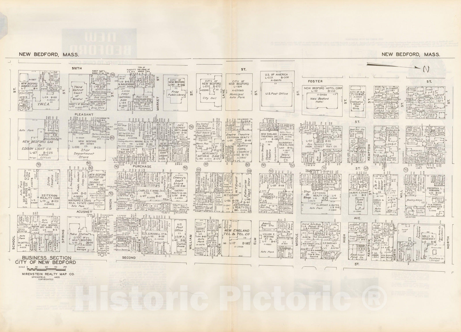 Historic Map : New England States Ed., New Bedford 1946 , Nirenstein's National Preferred Real Estate Locations of Business Properties , Vintage Wall Art