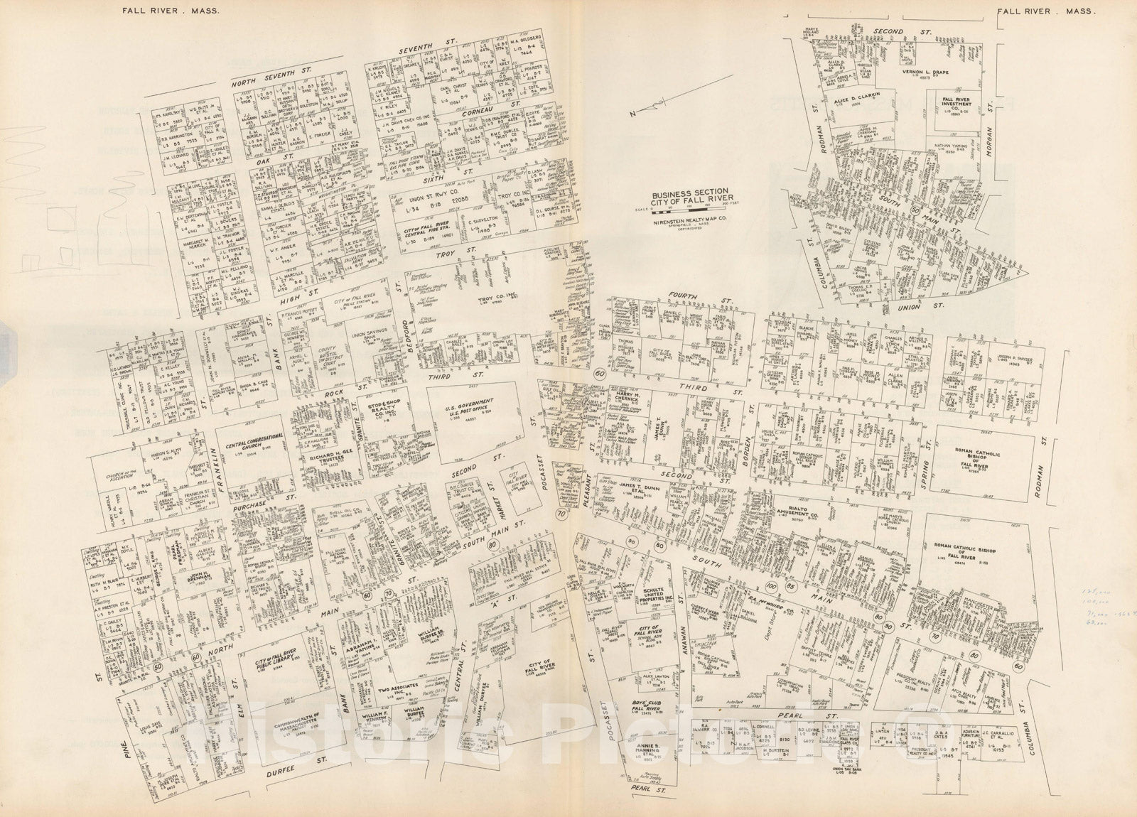 Historic Map : New England States Ed., Fall River 1946 , Nirenstein's National Preferred Real Estate Locations of Business Properties , Vintage Wall Art