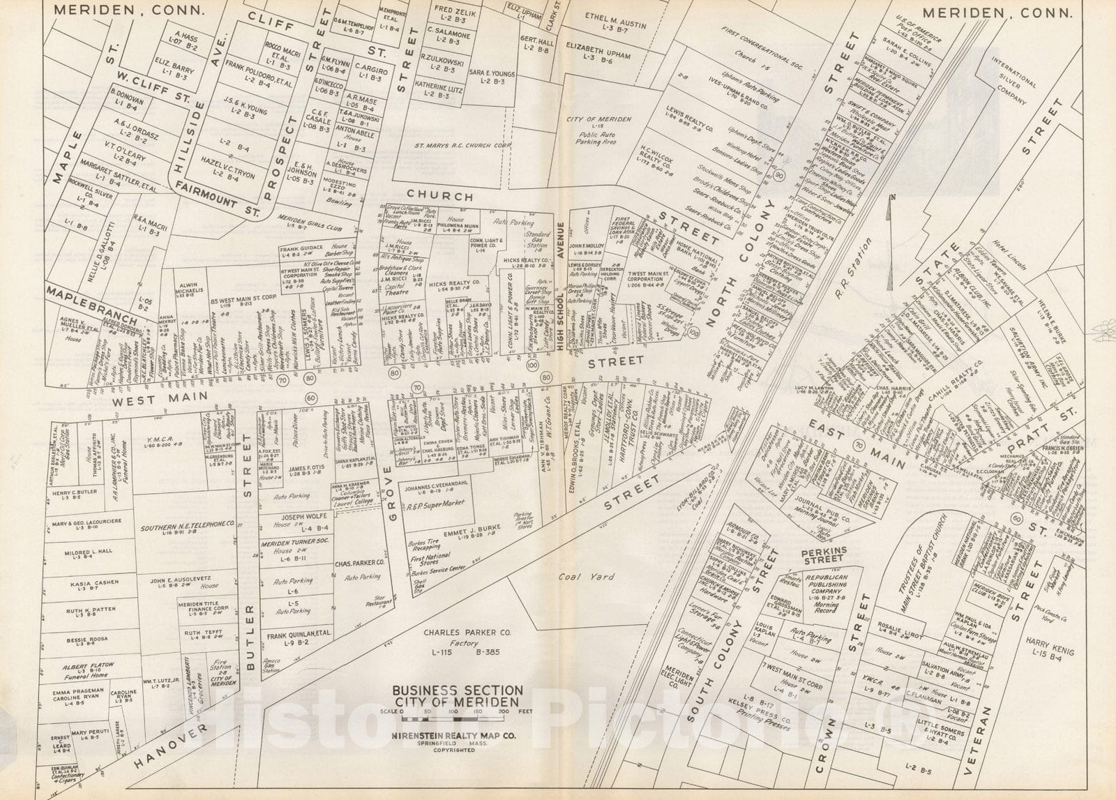 Historic Map : New England States Ed., Meriden 1946 , Nirenstein's National Preferred Real Estate Locations of Business Properties , Vintage Wall Art