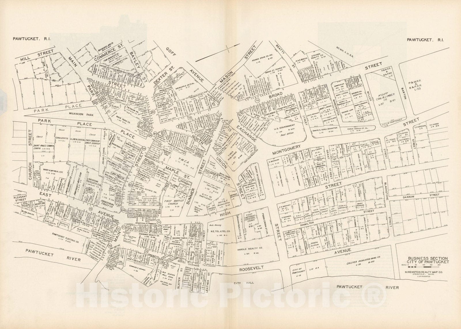 Historic Map : New England States Ed., Pawtucket 1946 , Nirenstein's National Preferred Real Estate Locations of Business Properties , Vintage Wall Art