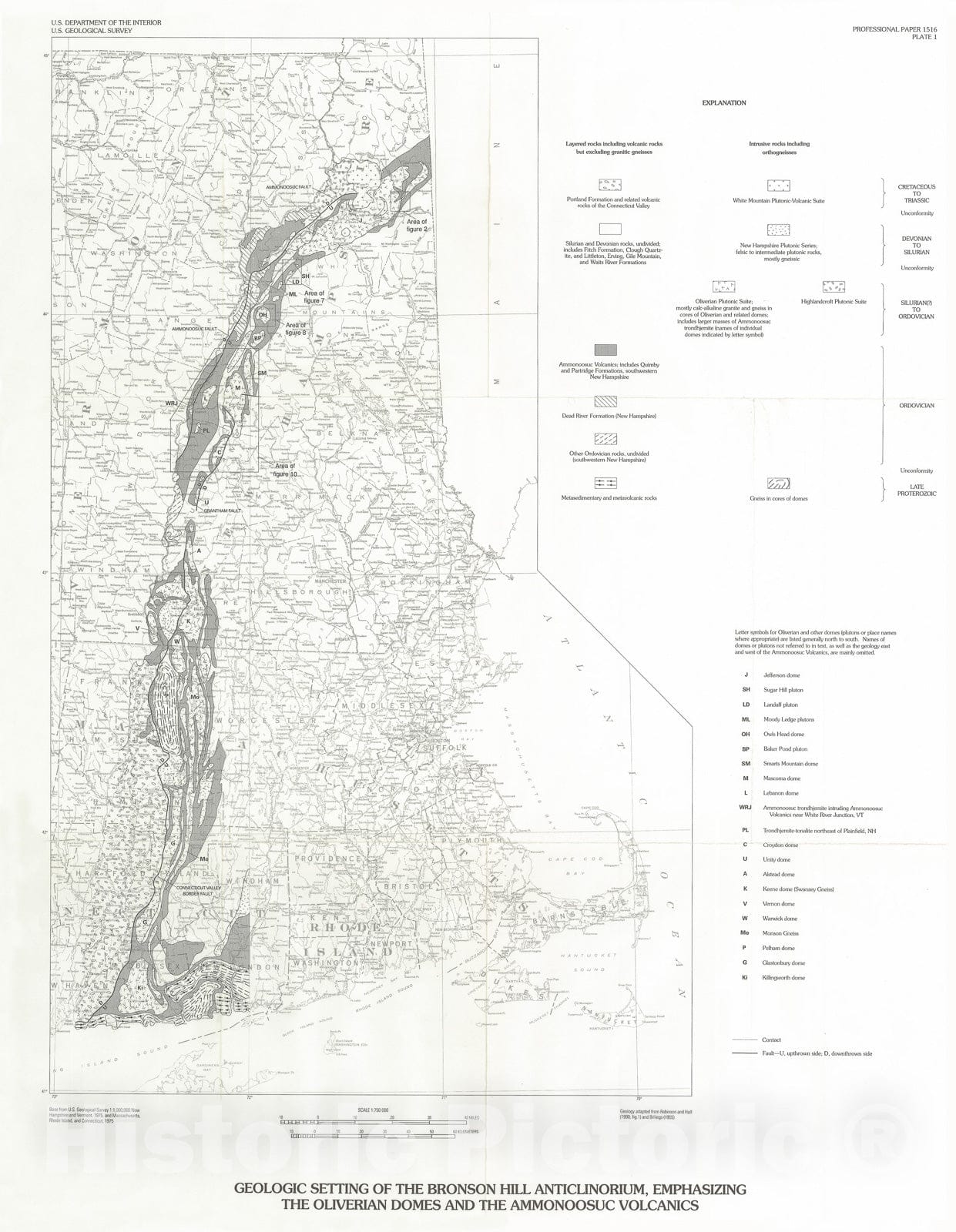 Map : Oliverian domes, related plutonic rocks, and mantling Ammonoosuc Volcanics of the Bronson Hill anticlinorium, New England Appalachians, 1991 Cartography Wall Art :
