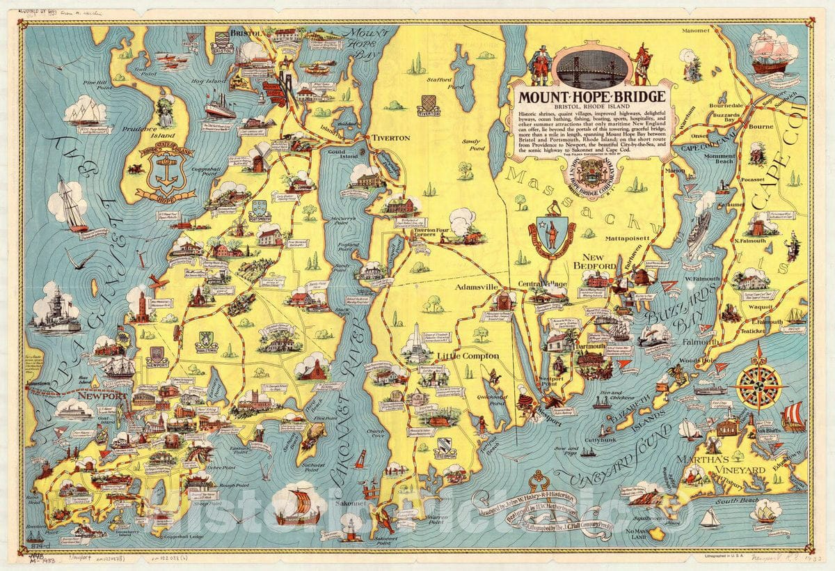 Newport and the historic island of Rhode Island : on the scenic route to Sakonnet, Cape Cod and New England's greatest seashore resorts / Mount Hope Bridge Corporation ; arranged by John W. Haley ; designed by H.W. Hetherington
