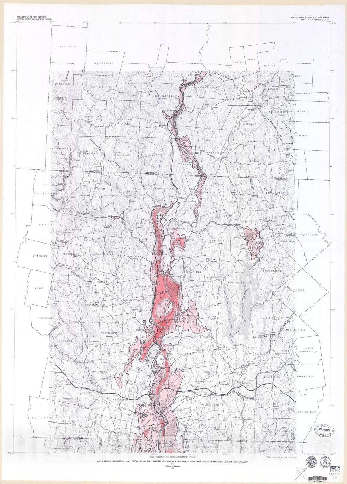Map : Map showing distribution and thickness of the principal fine-grained deposits, Connecticut Valley urban area, New England, 1979 Cartography Wall Art :