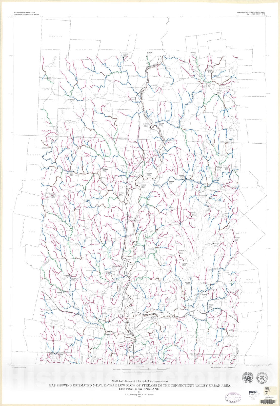Map : Map showing estimated 7-day 10-year low flow of streams in the Connecticut Valley urban area, New England, 1979 Cartography Wall Art :
