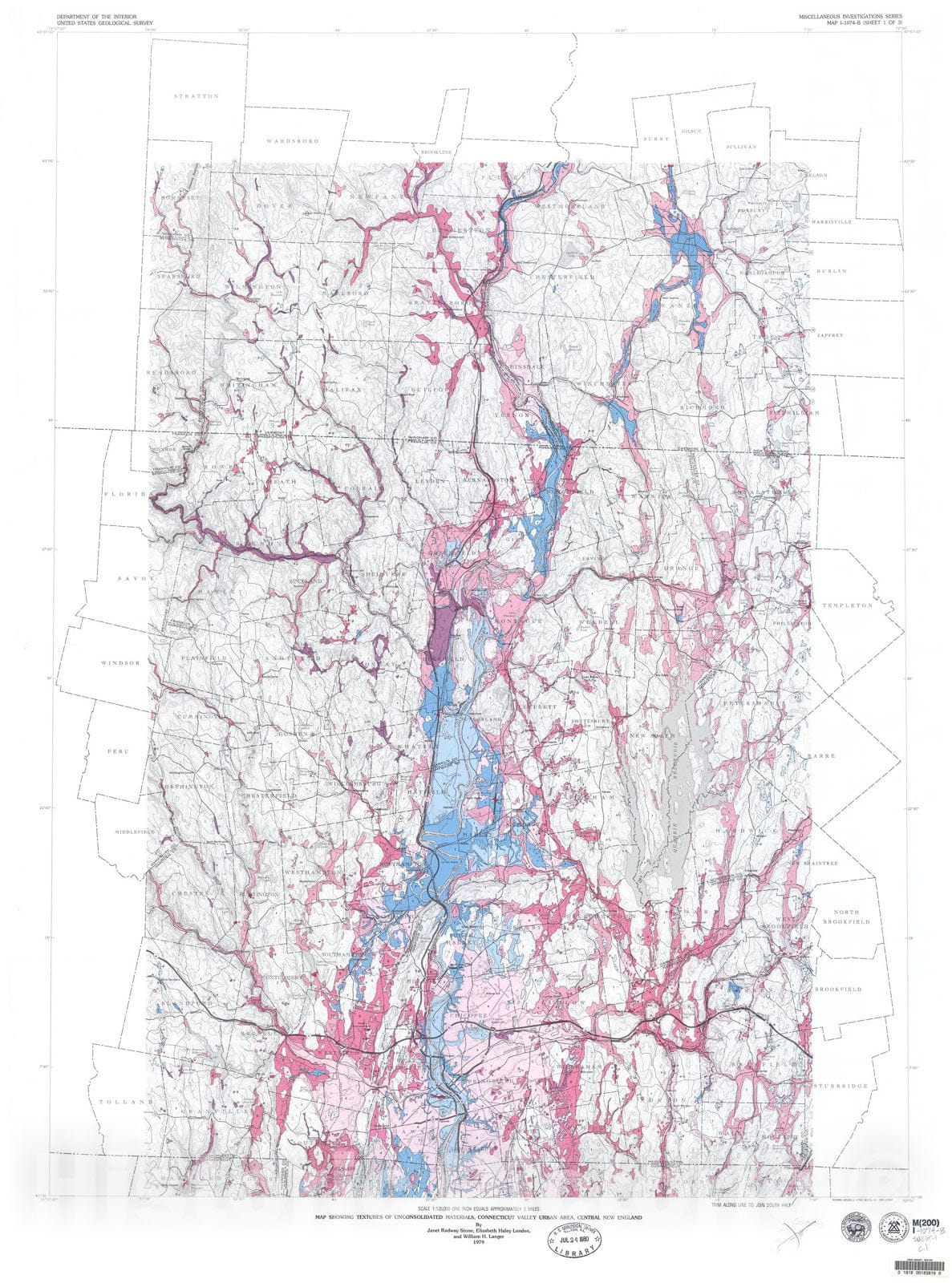 • .Map : Map showing textures of unconsolidated materials, Connecticut Valley urban area, central New England, 1979 Cartography Wall Art :