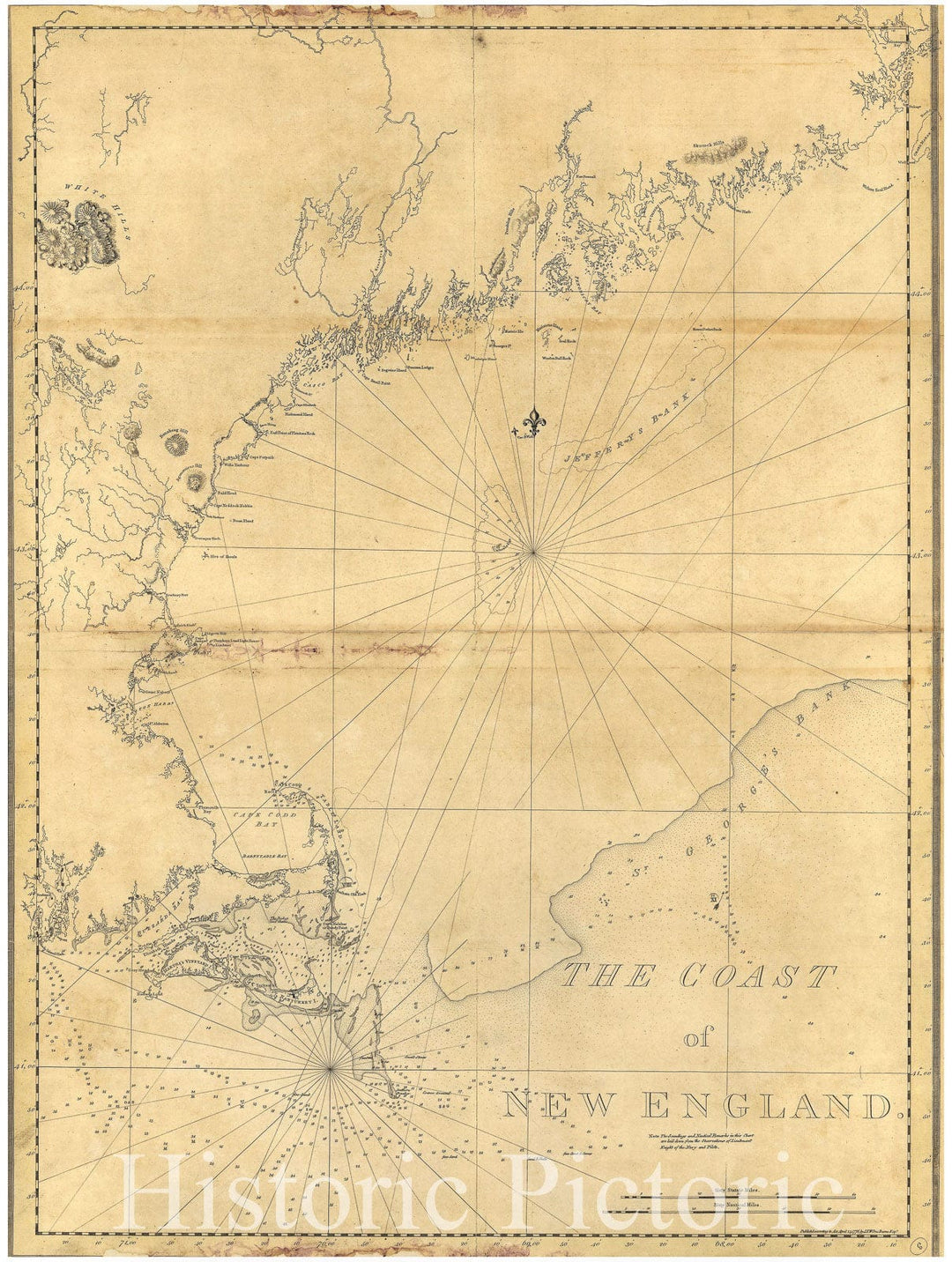 Historic Map : 18th Century Coastal Charts, Coast of New England 1776 Topographic Map , Vintage Wall Art