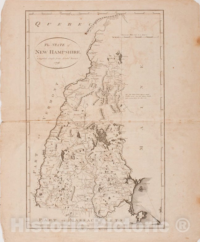 • .Historical Map, 1796 The State of New Hampshire, Vintage Wall Art