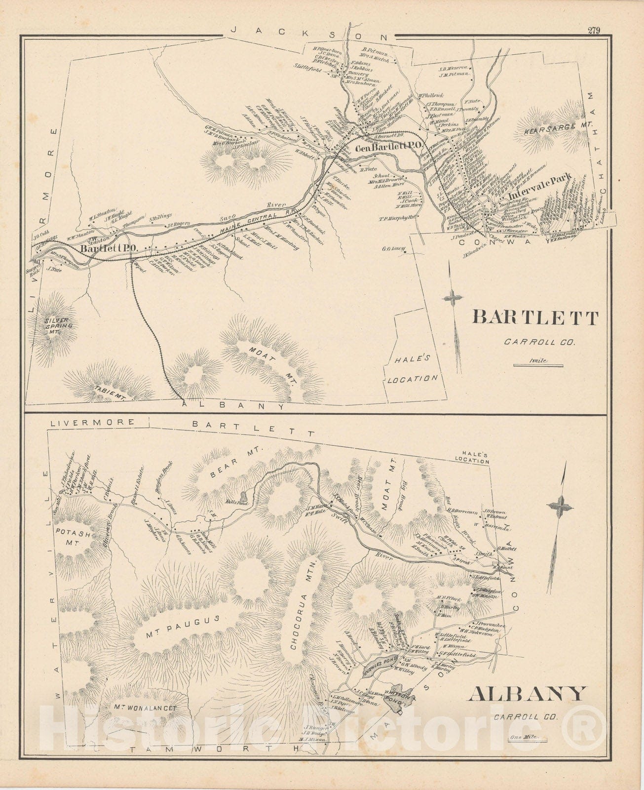 Historic Map : Albany & Bartlett 1892 , Town and City Atlas State of New Hampshire , Vintage Wall Art