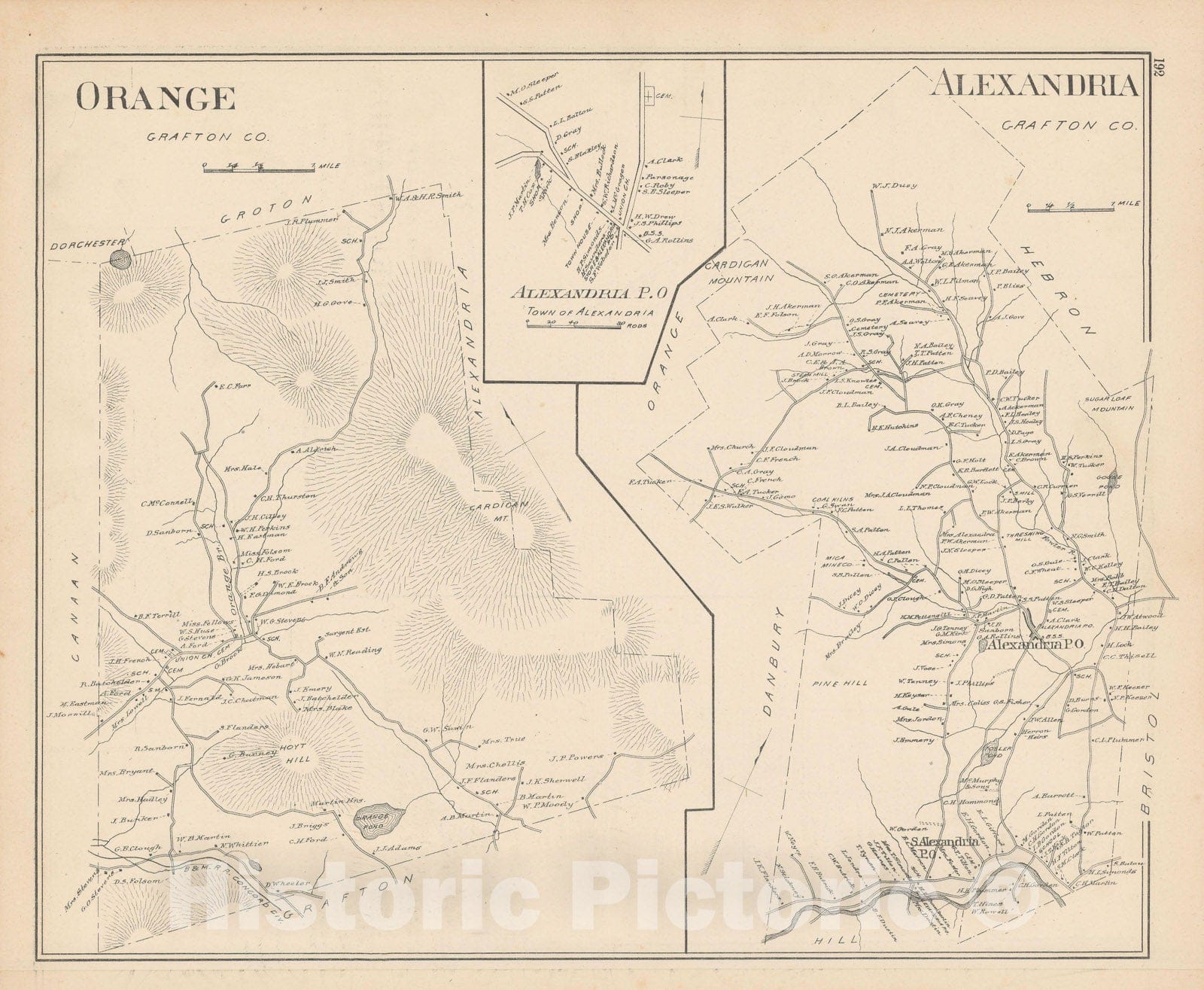 Historic Map : Alexandria & Orange 1892 , Town and City Atlas State of New Hampshire , Vintage Wall Art