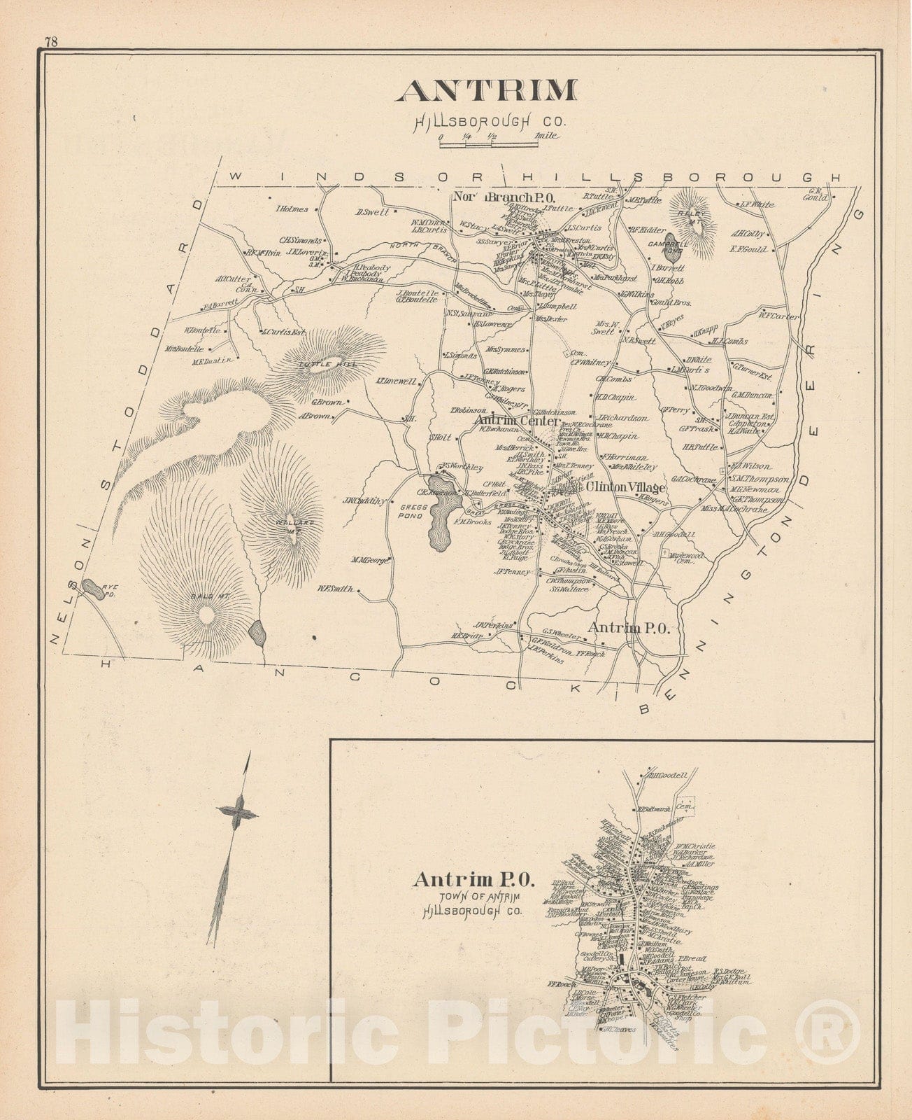 Historic Map : Antrim 1892 , Town and City Atlas State of New Hampshire , Vintage Wall Art