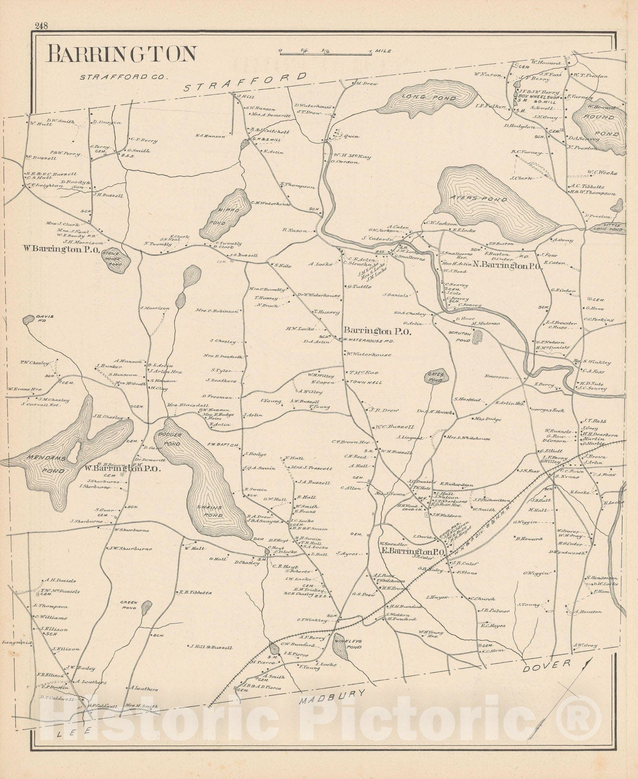 Historic Map : Barrington 1892 , Town and City Atlas State of New Hampshire , Vintage Wall Art