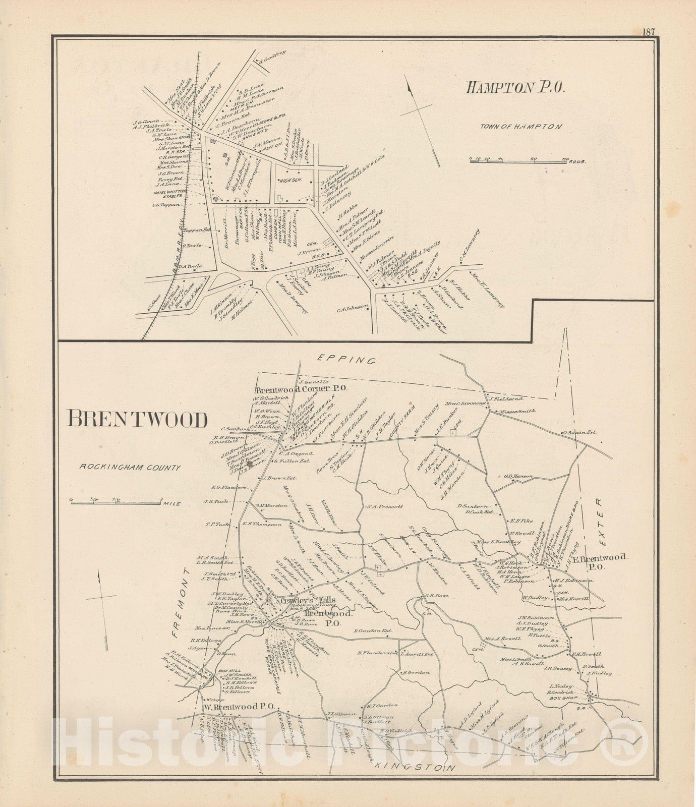 Town and City Atlas of the State of New Hampshire, Brentwood & Hampton 1892