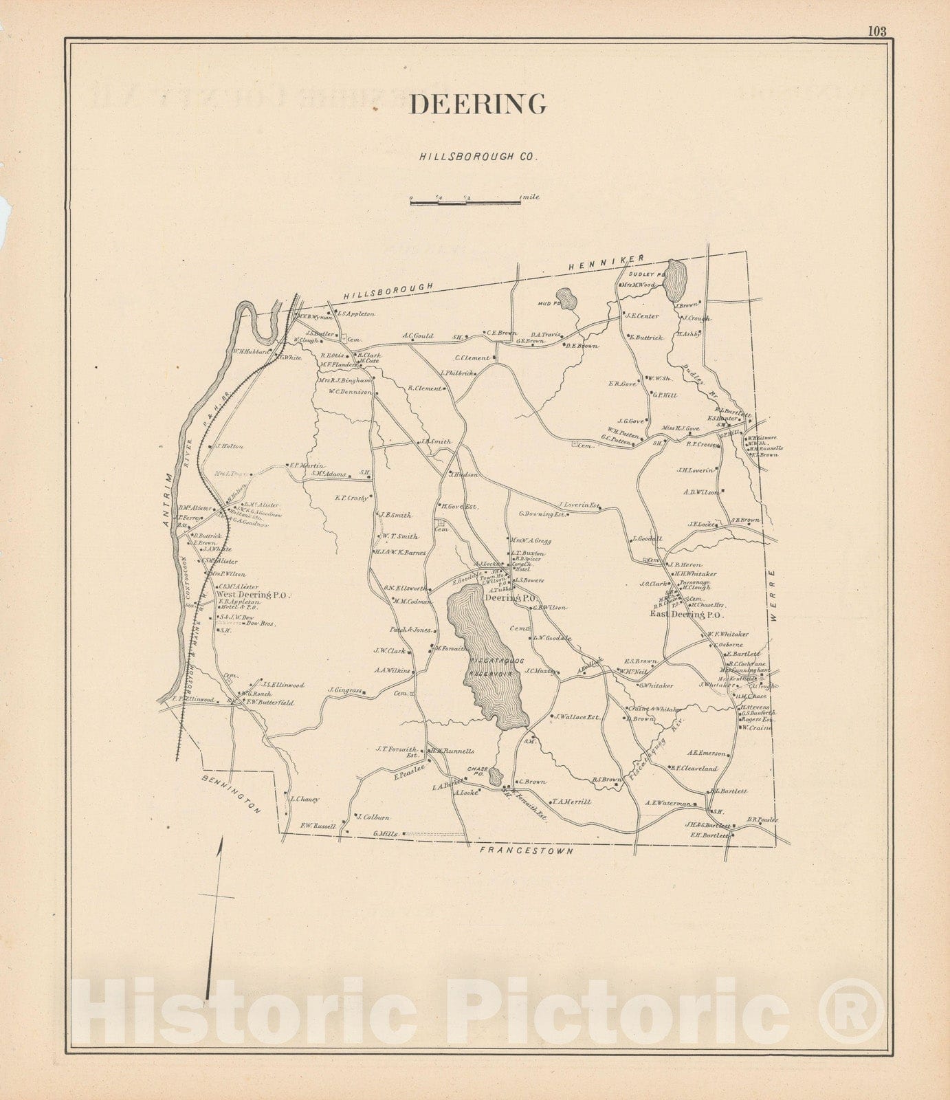 • .Historic Map : Deering 1892 , Town and City Atlas State of New Hampshire , Vintage Wall Art