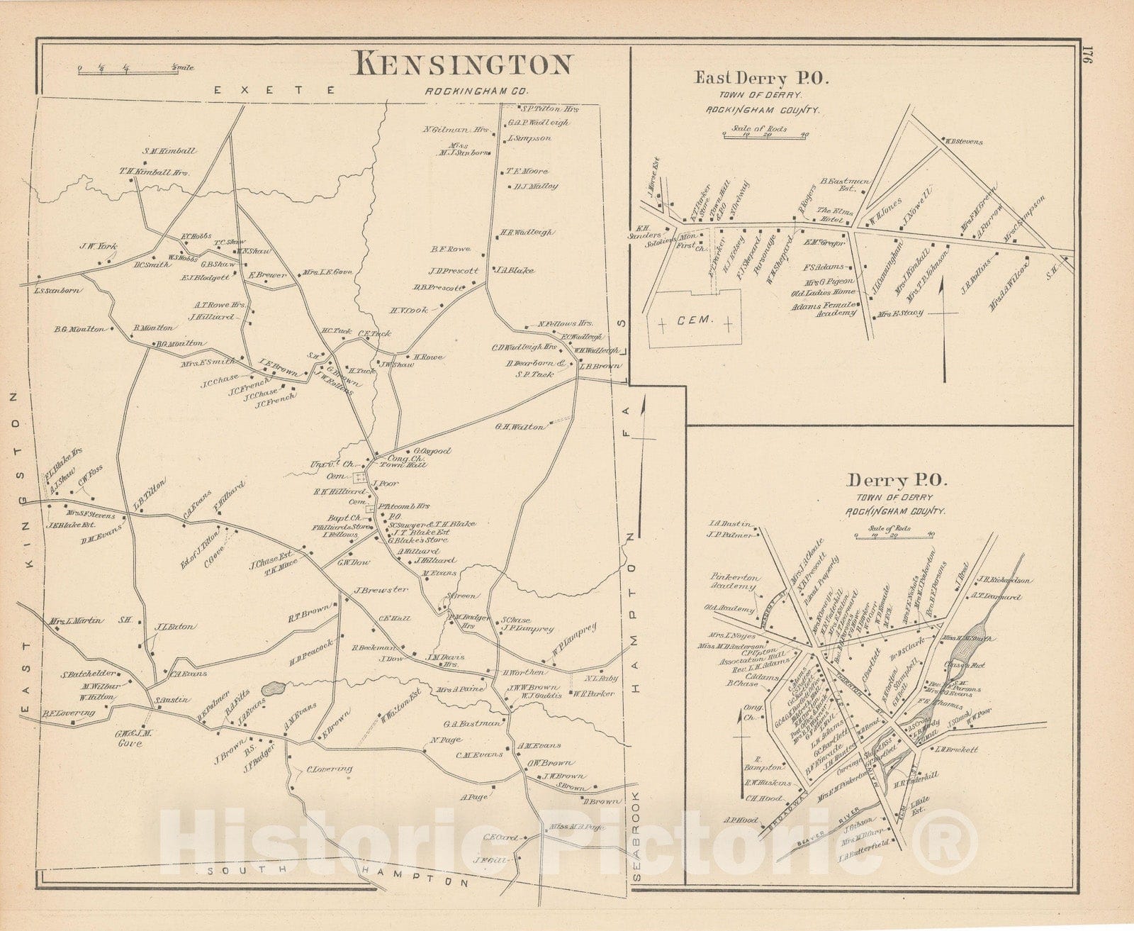 Historic Map : Derry & Kensington 1892 , Town and City Atlas State of New Hampshire , Vintage Wall Art