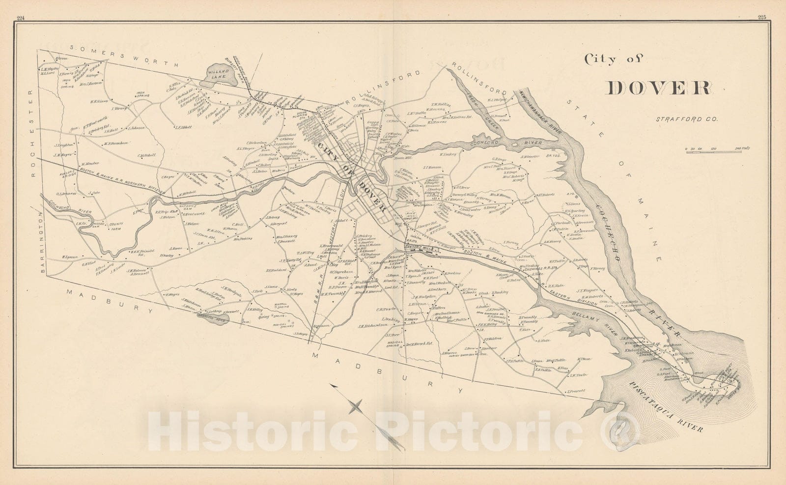 • .Historic Map : Dover 1892 , Town and City Atlas State of New Hampshire , v2, Vintage Wall Art