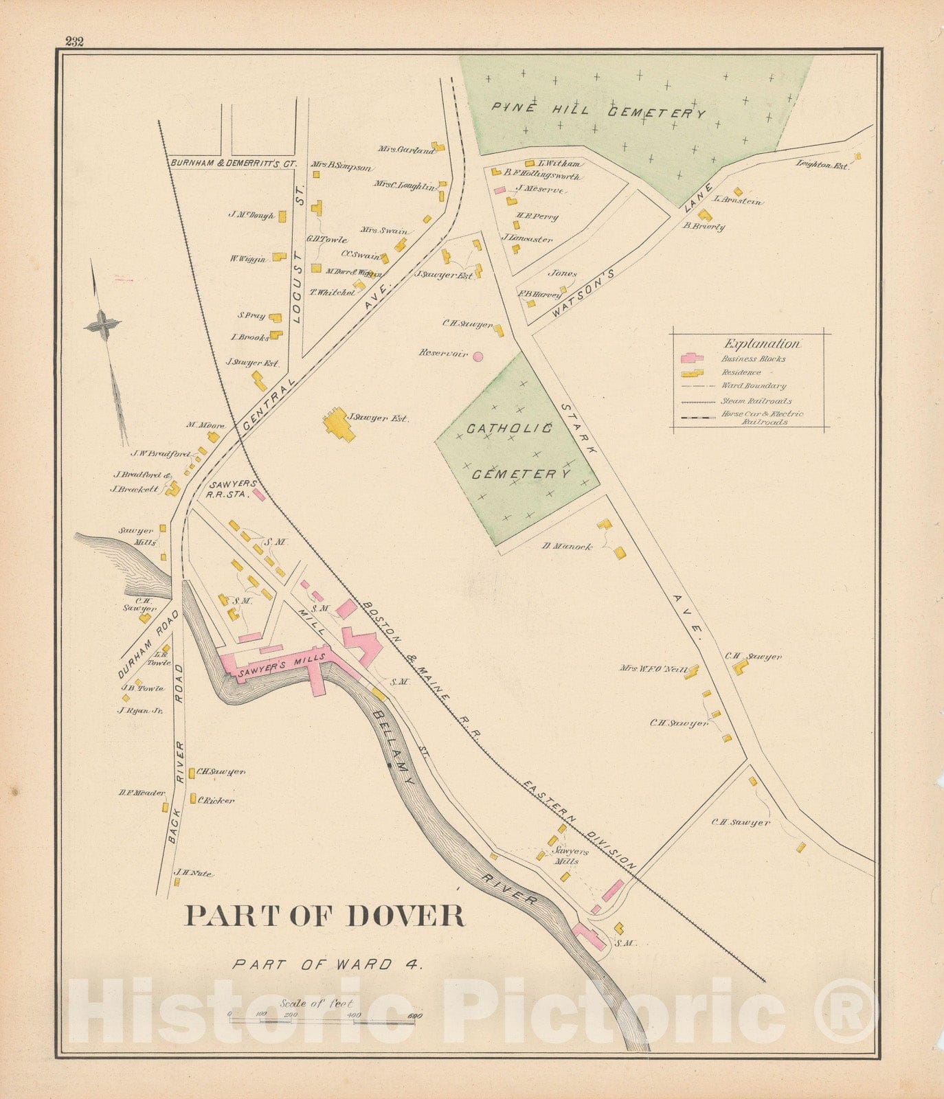 Historic Map : Dover 1892 , Town and City Atlas State of New Hampshire , v4, Vintage Wall Art