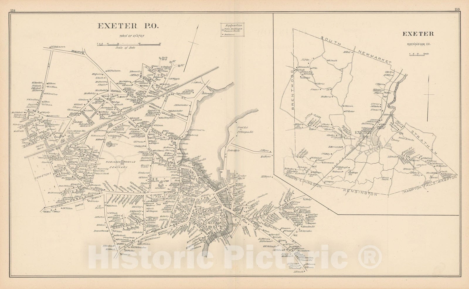 Historic Map : Exeter 1892 , Town and City Atlas State of New Hampshire , Vintage Wall Art