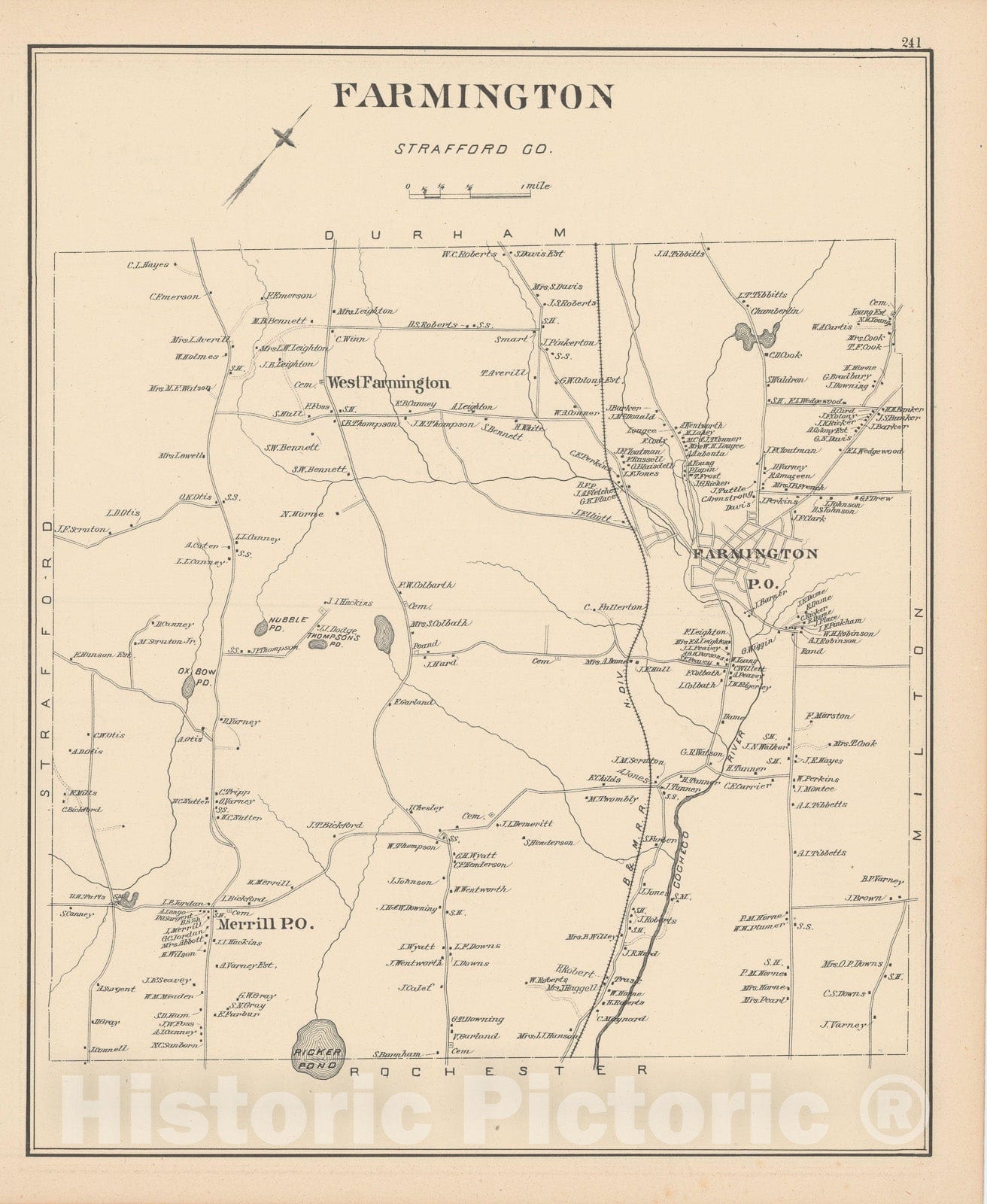• .Historic Map : Farmington 1892 , Town and City Atlas State of New Hampshire , v2, Vintage Wall Art