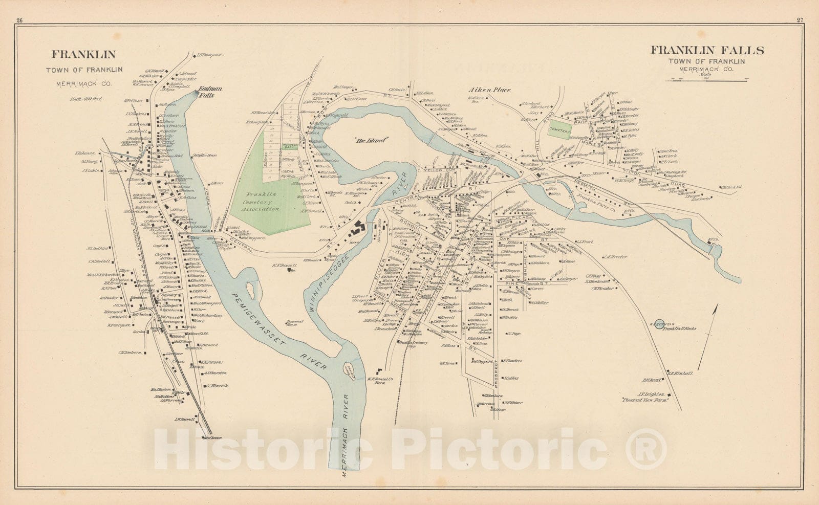 Historic Map : Franklin 1892 , Town and City Atlas State of New Hampshire , v2, Vintage Wall Art