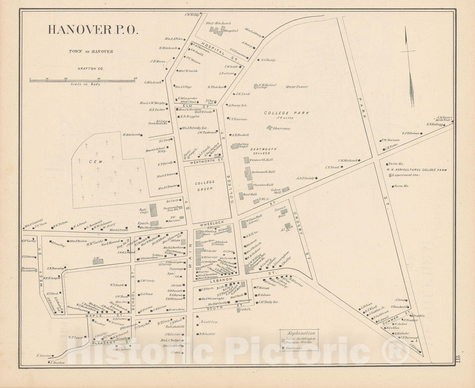 Historic Map : Hanover 1892 , Town and City Atlas State of New Hampshire , Vintage Wall Art