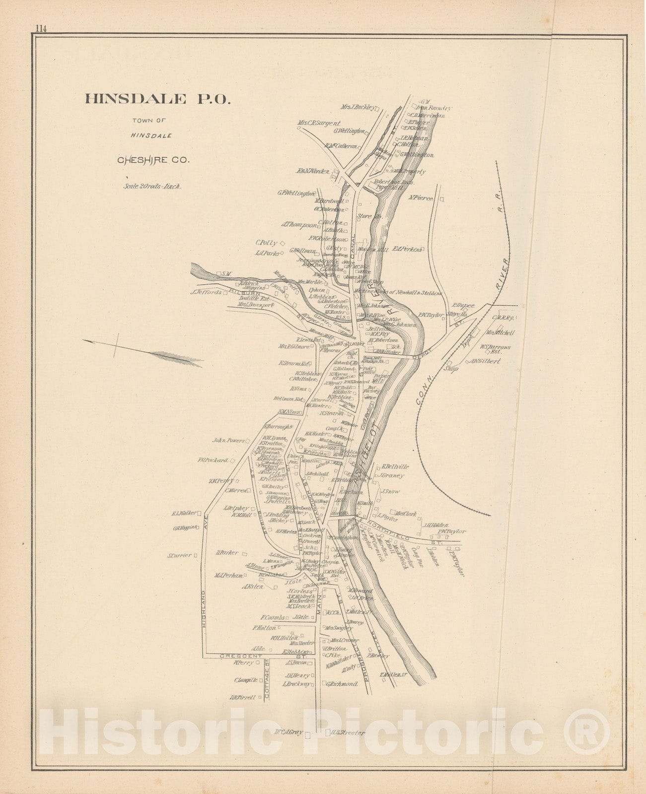 • .Historic Map : Hinsdale 1892 , Town and City Atlas State of New Hampshire , Vintage Wall Art