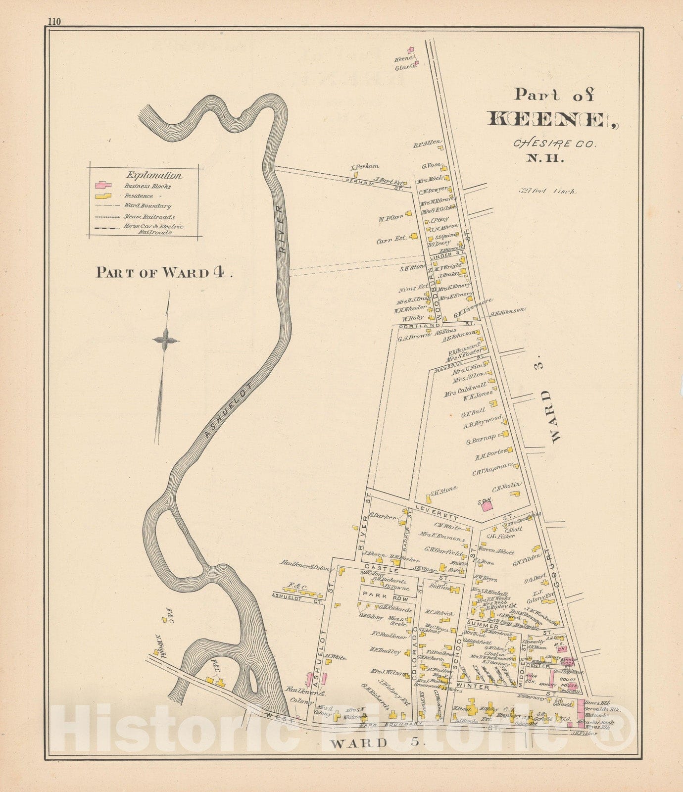 Historic Map : Keene 1892 , Town and City Atlas State of New Hampshire , v6, Vintage Wall Art