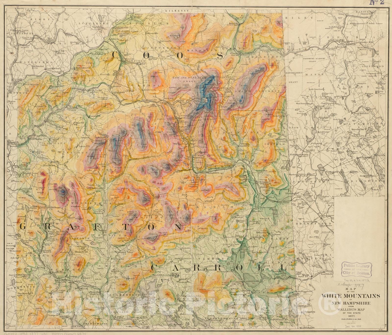 Map of the White Mountains of New Hampshire from Walling's map of the state, 1877