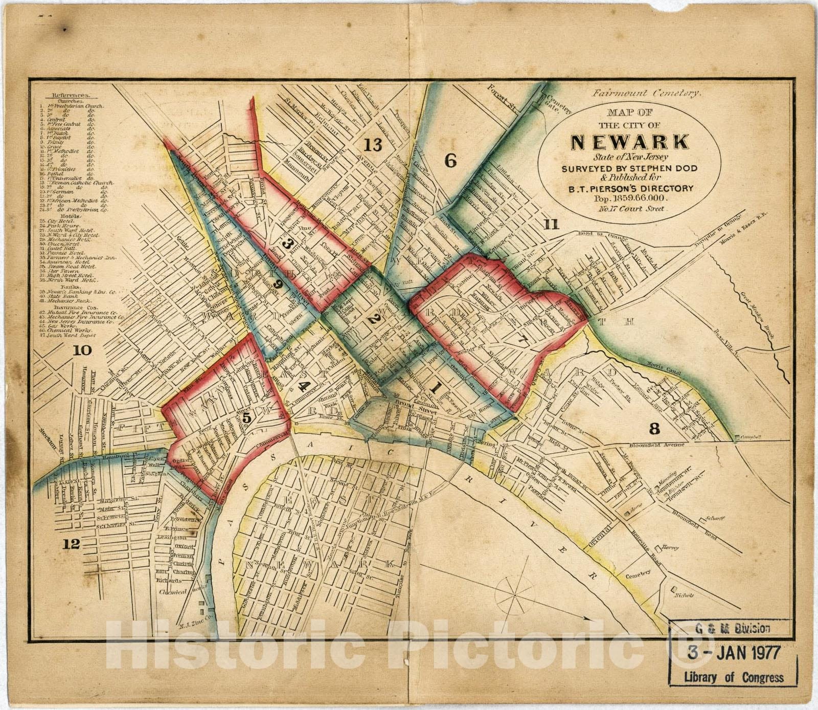 Historic 1859 Map - Map of The City of Newark, State of New Jersey