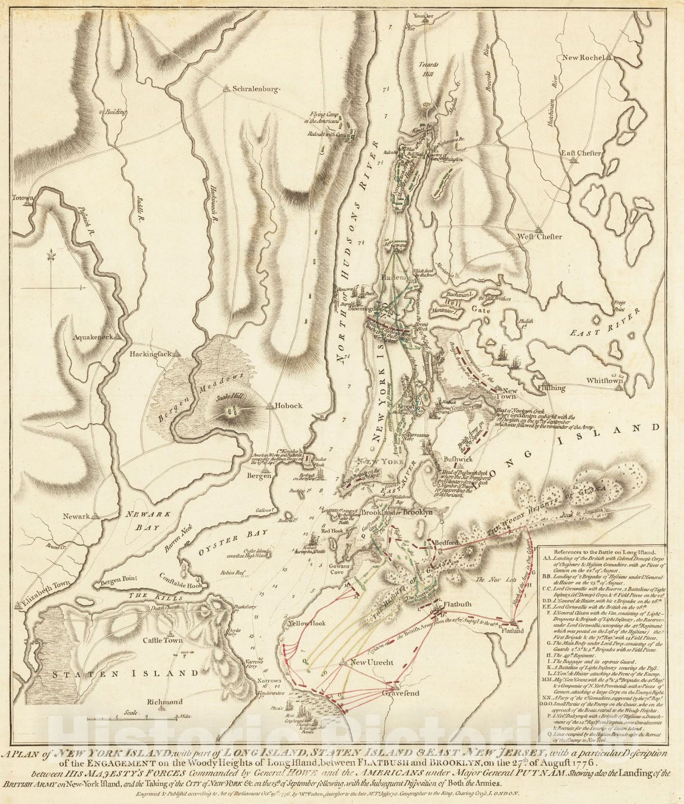 • .Historic Map : New York Island, with Long Island, Staten Island & New Jersey, Woody Heights of Long Island, between Flatbush and Brooklyn, 1776, William Faden, Vintage Wall Art