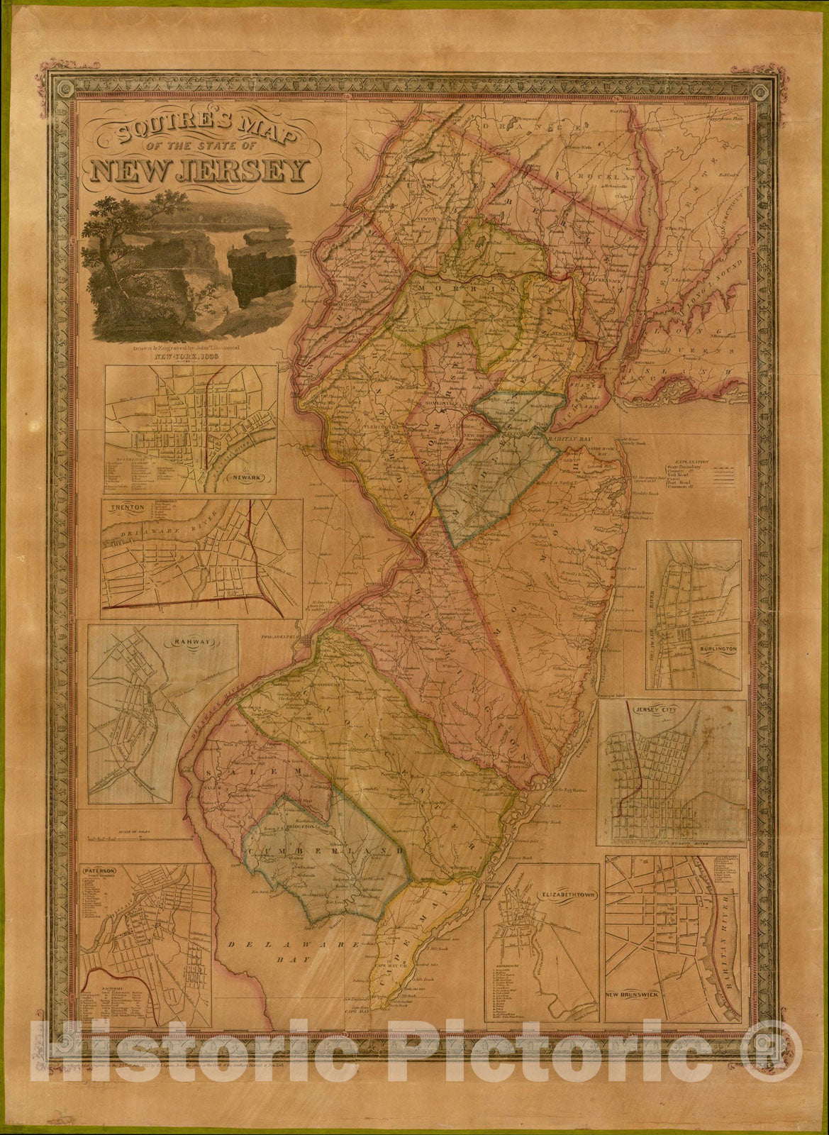 Historic Map : Squire's Map of the State of New Jersey, 1836, Bela S. Squire, Vintage Wall Art
