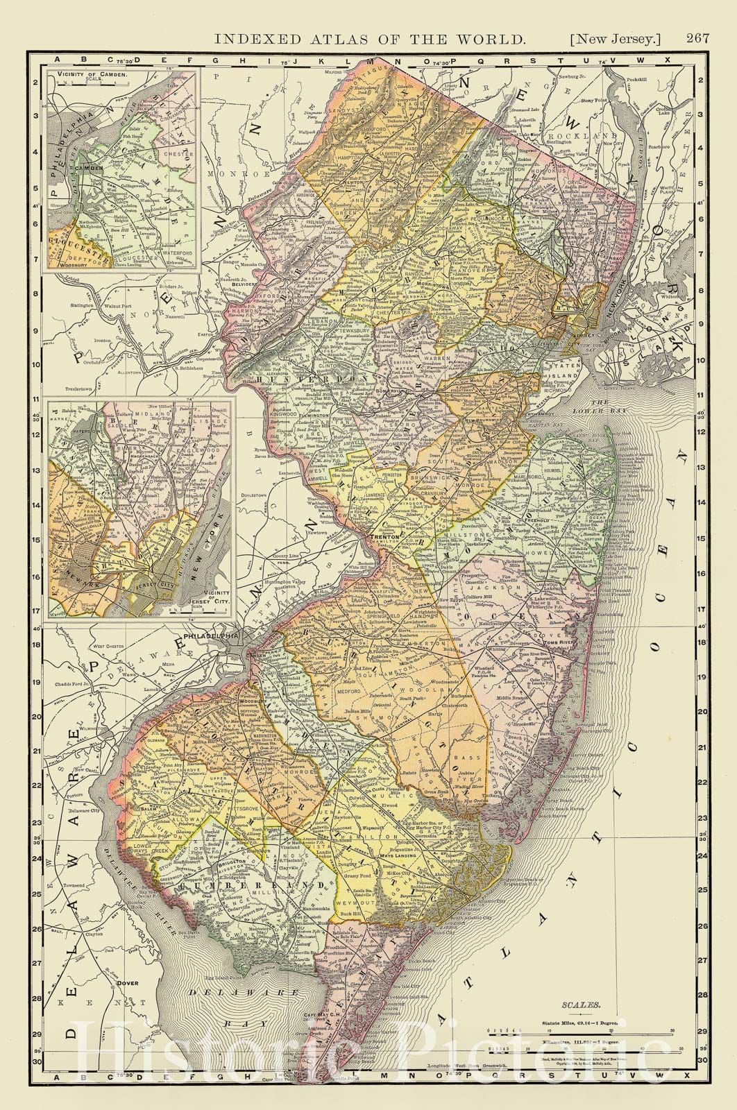 • Historic Map : National Highways map of the State of New Jersey : showing seven hundred miles of national highways, 1915 , Vintage Wall Art