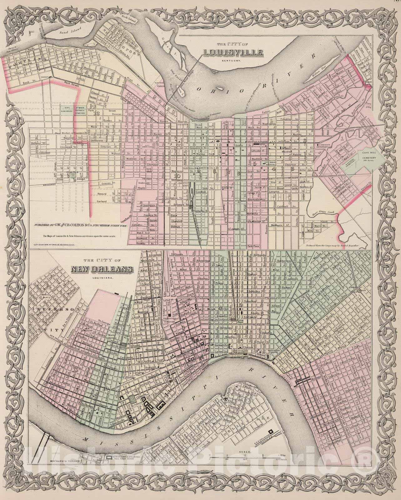 Historic Map : 1886 Louisville, Kentucky. New Orleans, Louisiana. - Vintage Wall Art